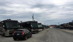 First of all, they provide RV parking for 93 RV’s just outside the repair bays. It isn’t fancy, but all hookups are included. The cost is $20.00 per night and if your RV is under warranty, it is free. How much better could that be? There are no reservations, and it is on a first come, first served basis. When we arrived on Friday afternoon after spending the night in Tallahassee, there were no spots available, so we went to the “overflow” lot just down the street. Again, only $20.00 per night. Secondly, there are about 49 service bays, some of which are doubles. There is a steel frame area and a woodshop area. There are also two lounges, a service…